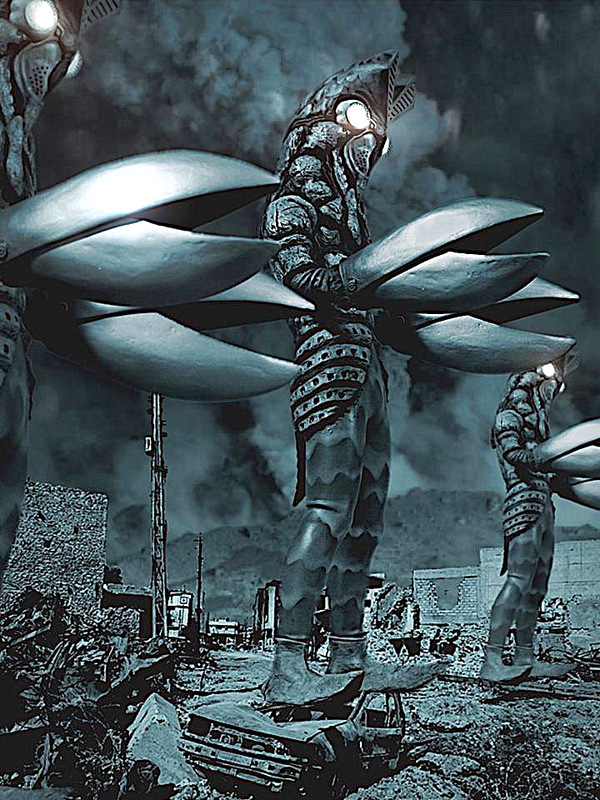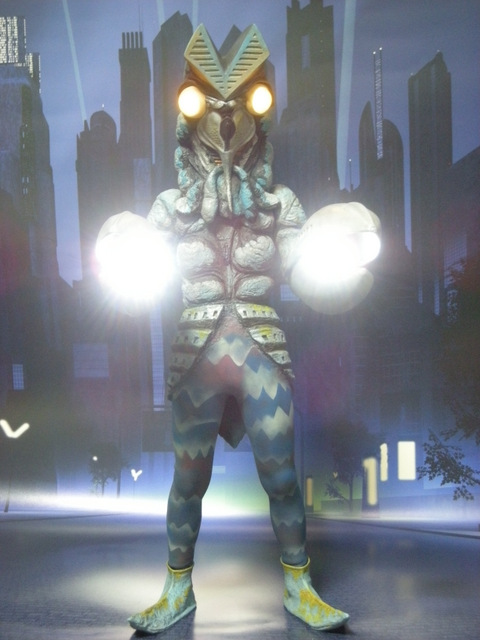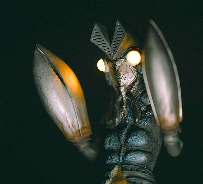 趣向を凝らしたライティングが、不気味なバルタン星人のシルエットを描いていて、一粒で二度おいしい画像になっていますね!