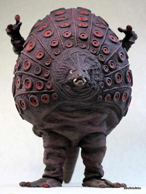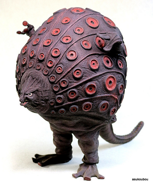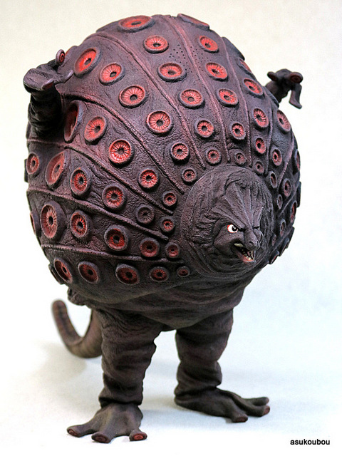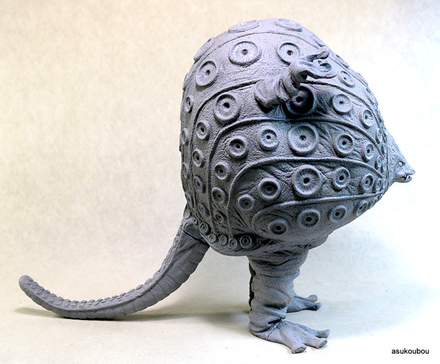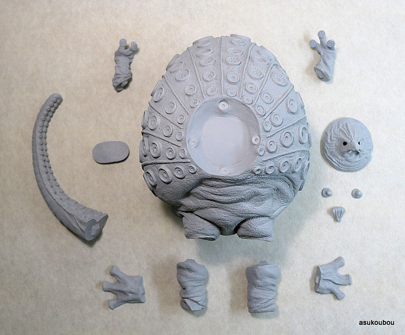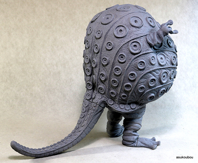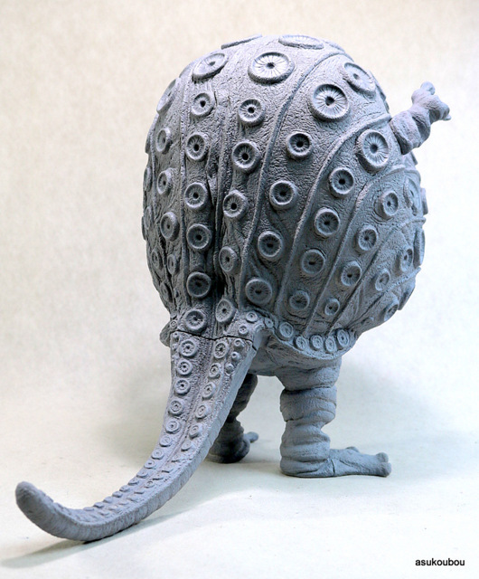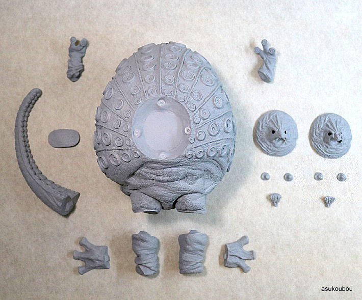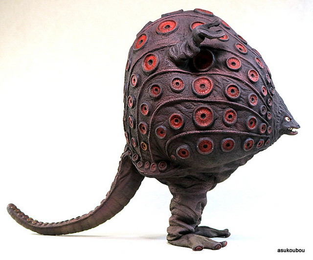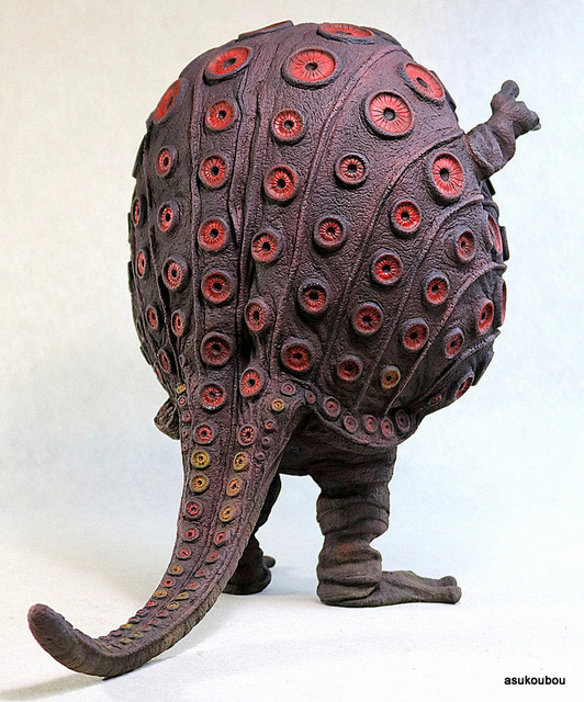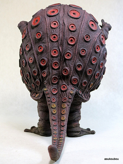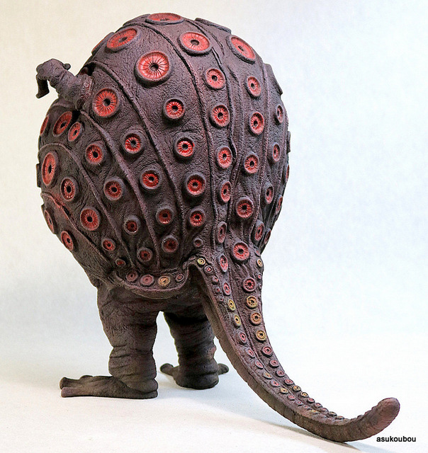 この言葉では表現できない深みのある体色、紫か黒か青かわからない、吸盤の赤との対比で何色にでも見えてくる不思議な色を見事に再現していますね。