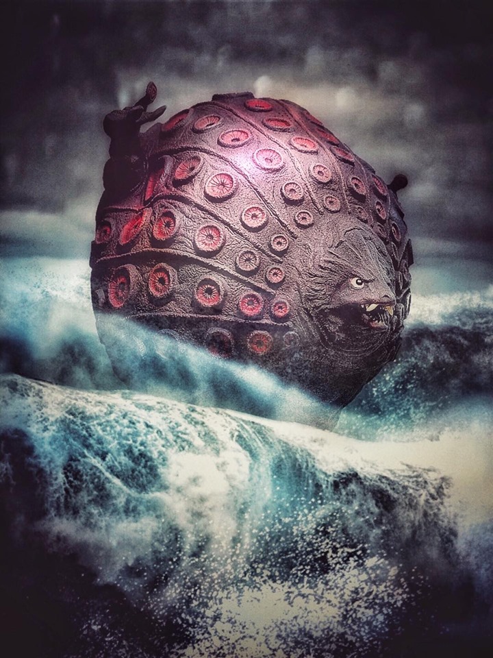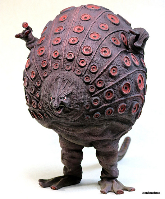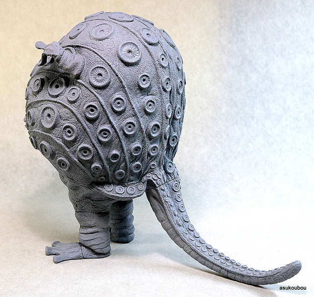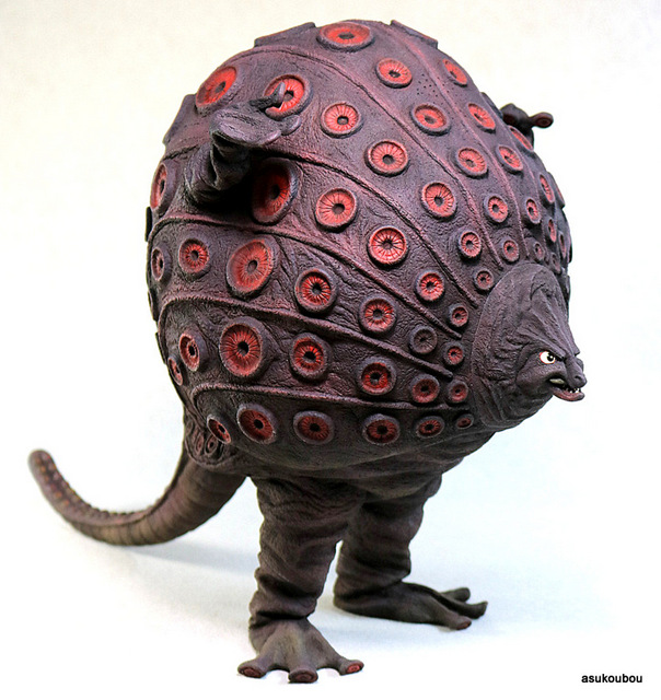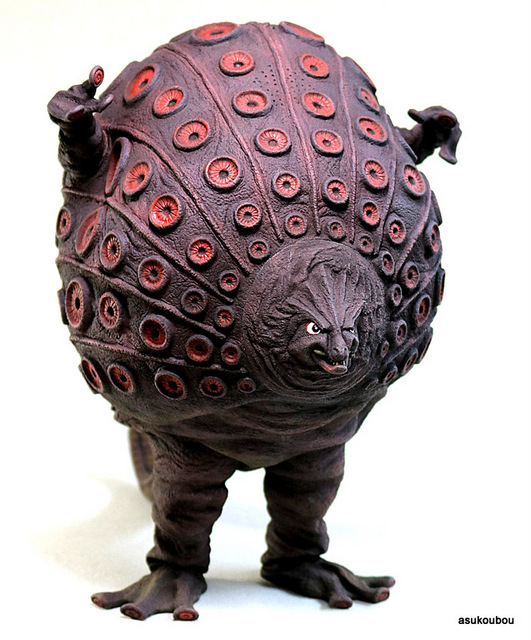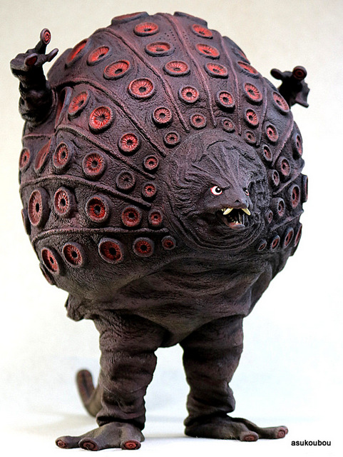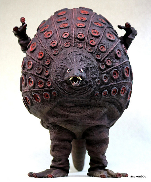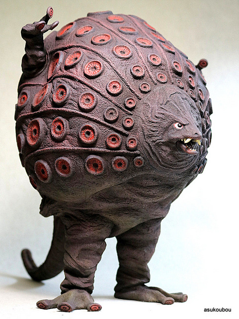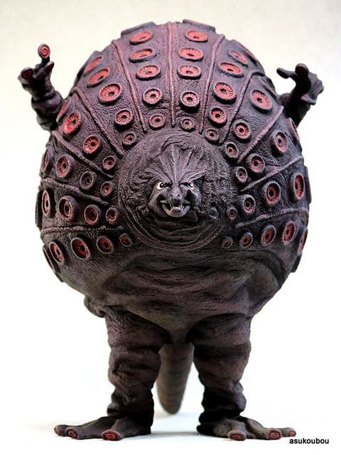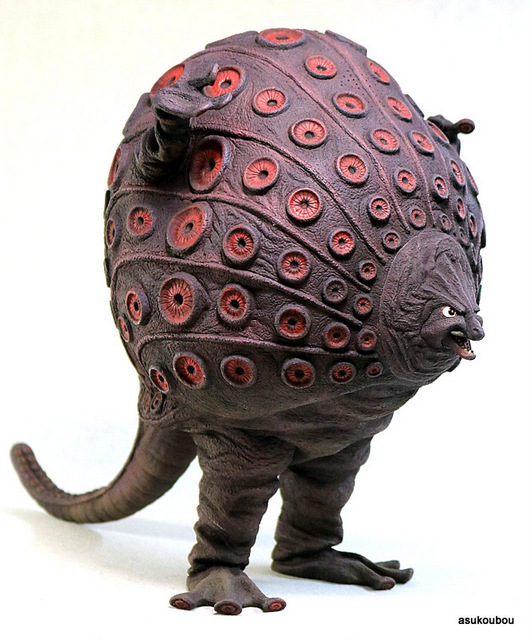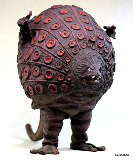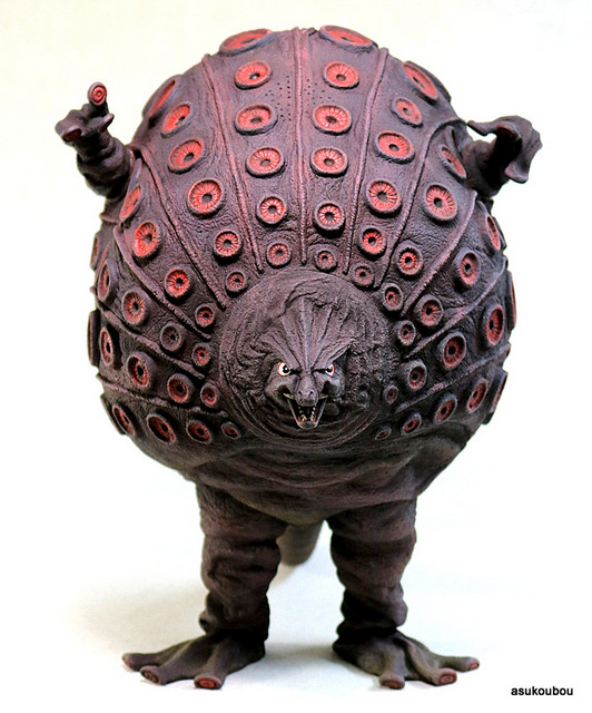 この言葉では表現できない深みのある体色、紫か黒か青かわからない、吸盤の赤との対比で何色にでも見えてくる不思議な色を見事に再現していますね。