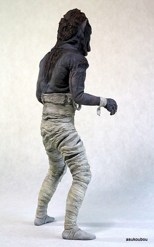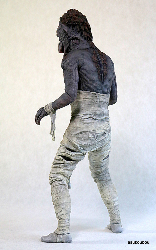 包帯部はかなり黄色みを感じたのでクリアイエローを少量加えたフラットホワイトを吹き、さらに黄色みを足すためウェザリングカラーの「オーカーソイル」をウォッシング、最後に薄めたクリアオレンジを所々筆で滲ませるように塗り色味に変化を持たせました。