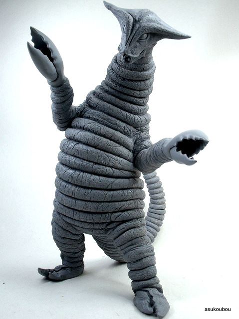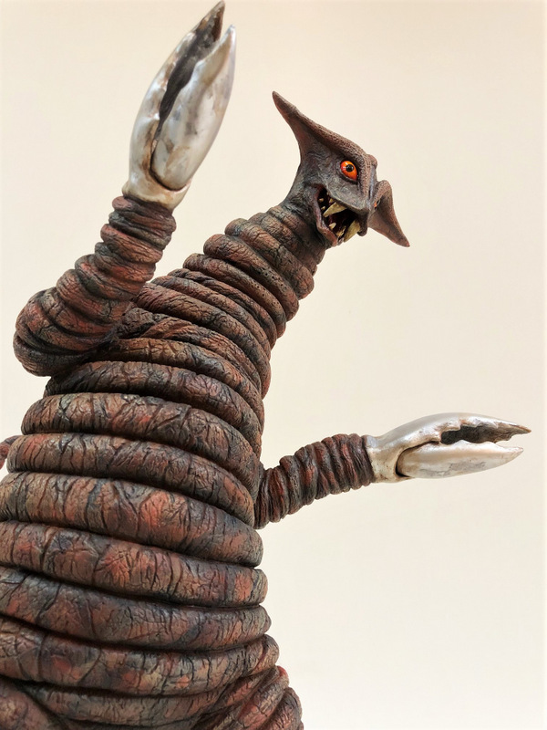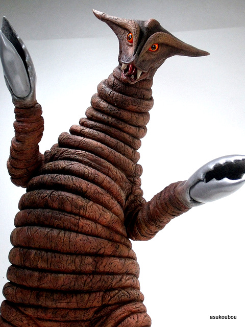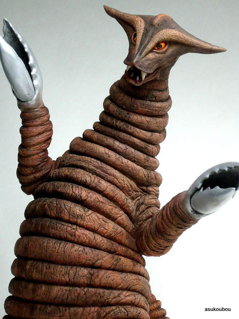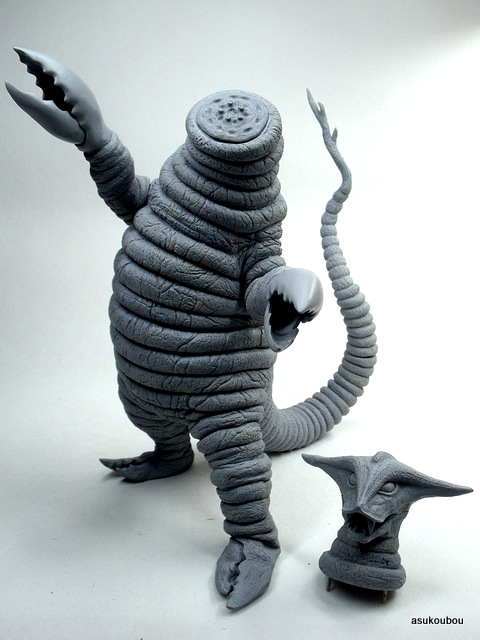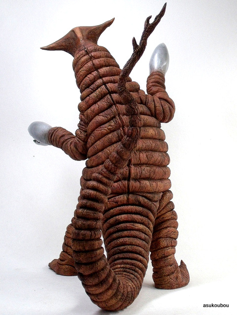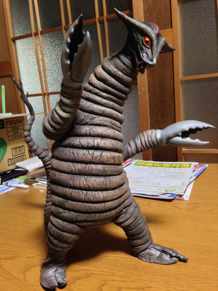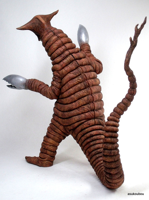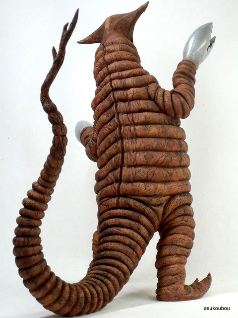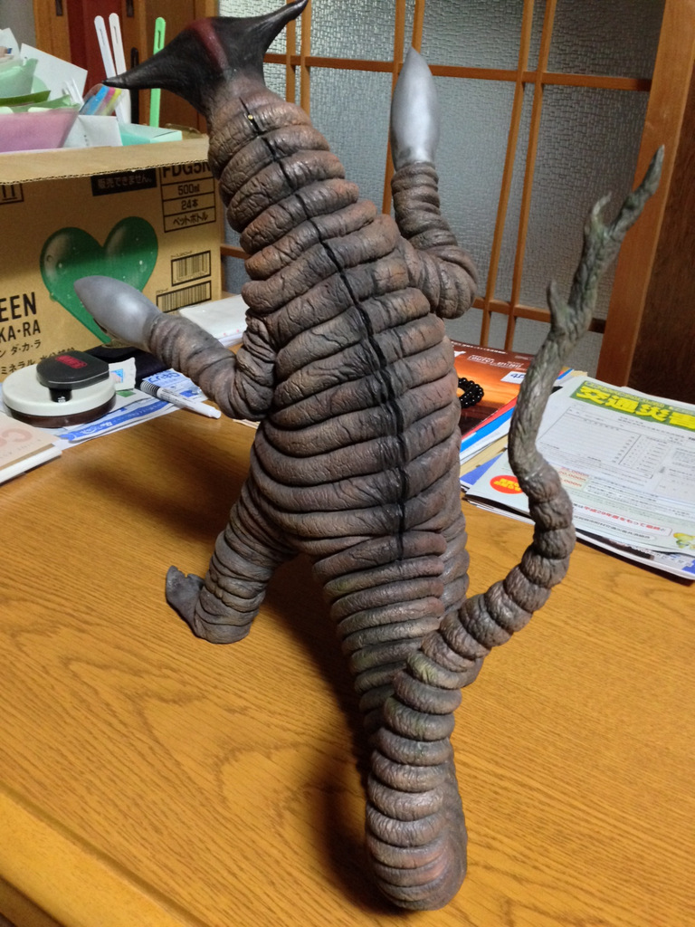 私の完成品製作記をかなり参考にしてくれているようで、シンプルな怪獣のペイントの難しさに苦労したとの事ですが、皺の表現も墨入れが、嫌味にならない感じで押さえられていて、好感の持てる完成品になって居ると思います。