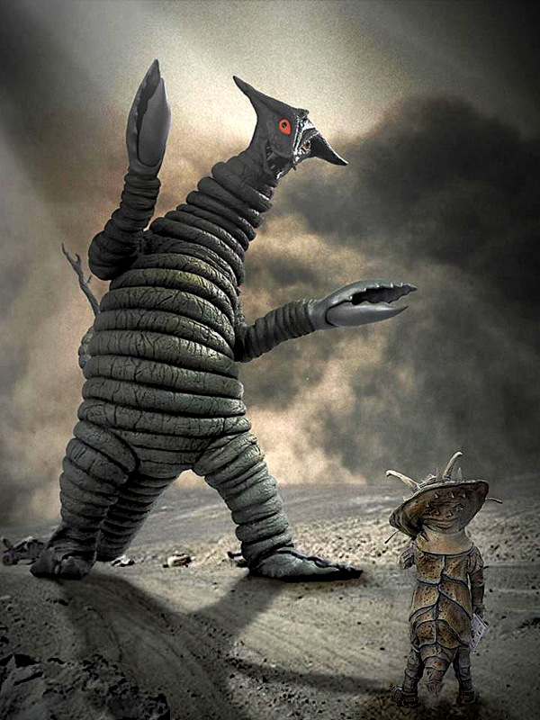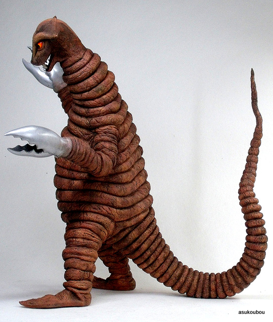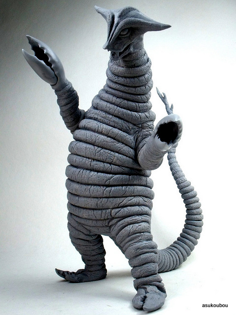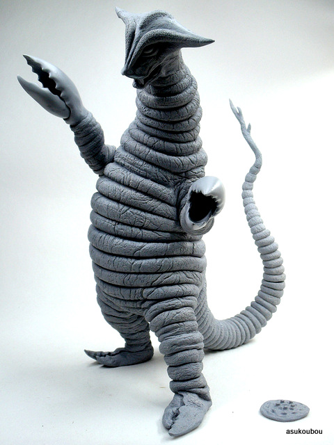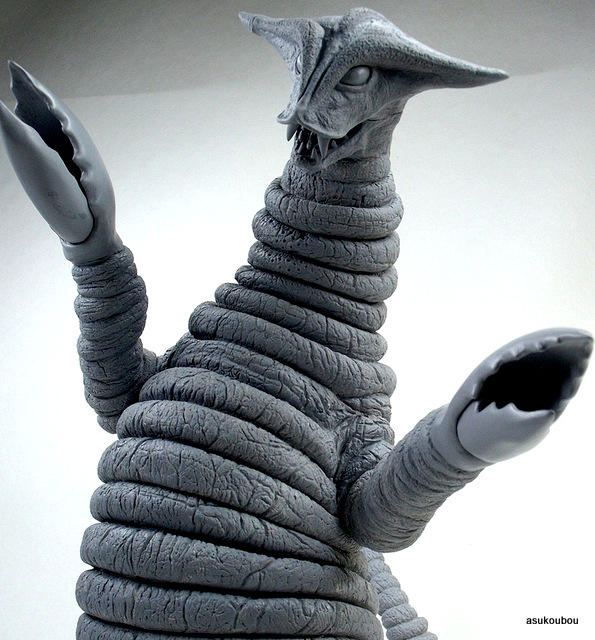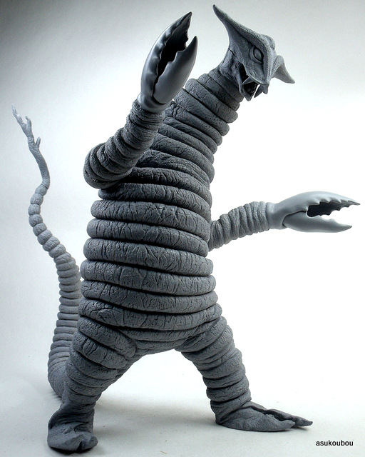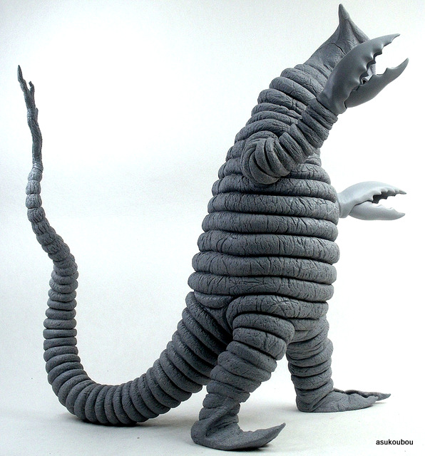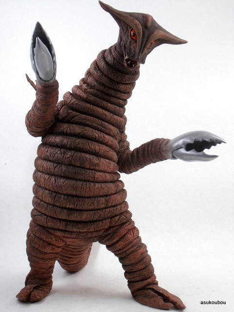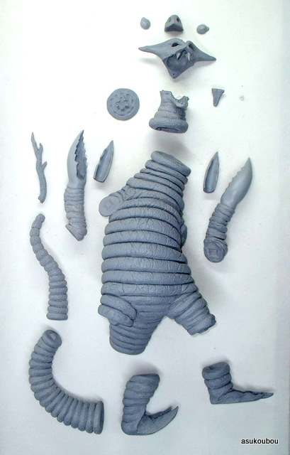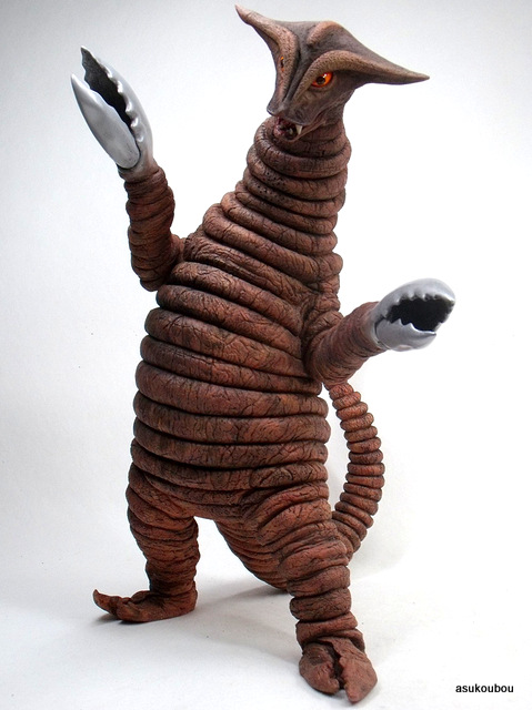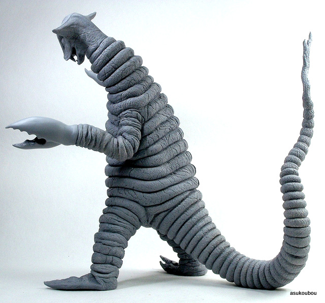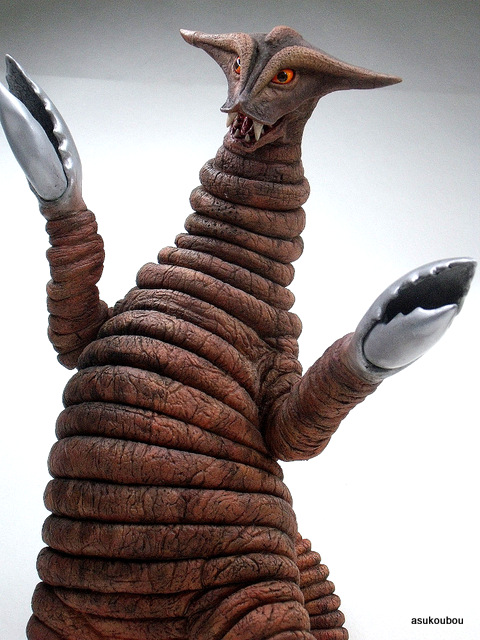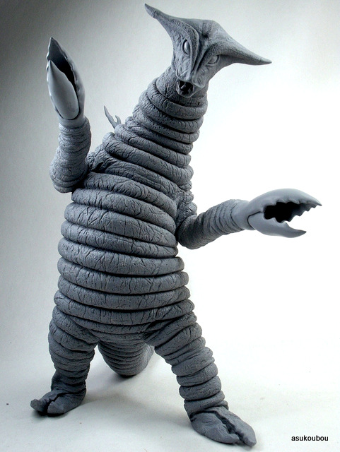 私の完成品製作記をかなり参考にしてくれているようで、シンプルな怪獣のペイントの難しさに苦労したとの事ですが、皺の表現も墨入れが、嫌味にならない感じで押さえられていて、好感の持てる完成品になって居ると思います。