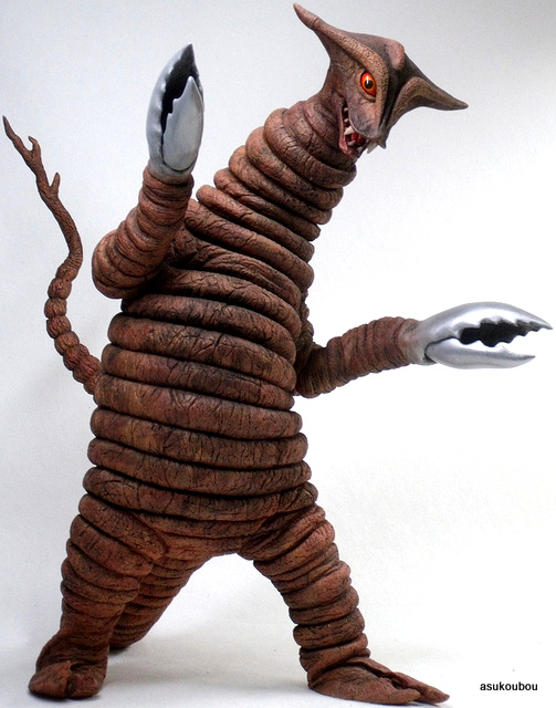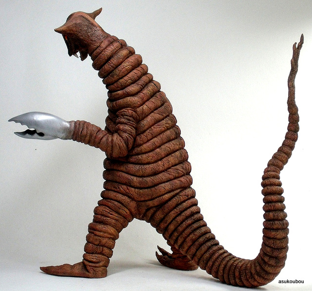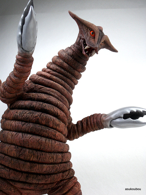 サドラの凶暴さが良く表現されててメチャカッコイイ!目のペイントも眼力があって、すごく良いと思います。ハサミの汚し塗装が効いてますね〜あとは何と言っても体色の色数の多さですね。