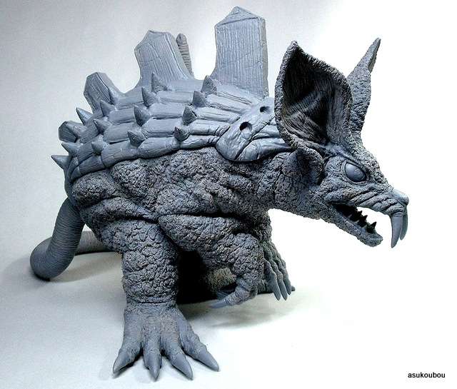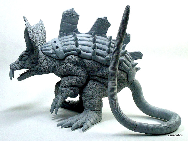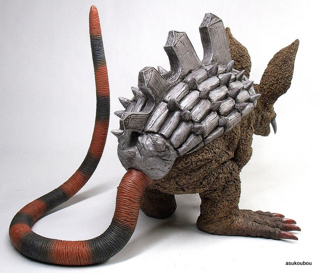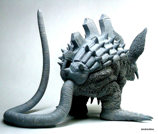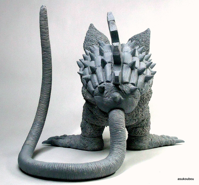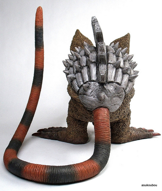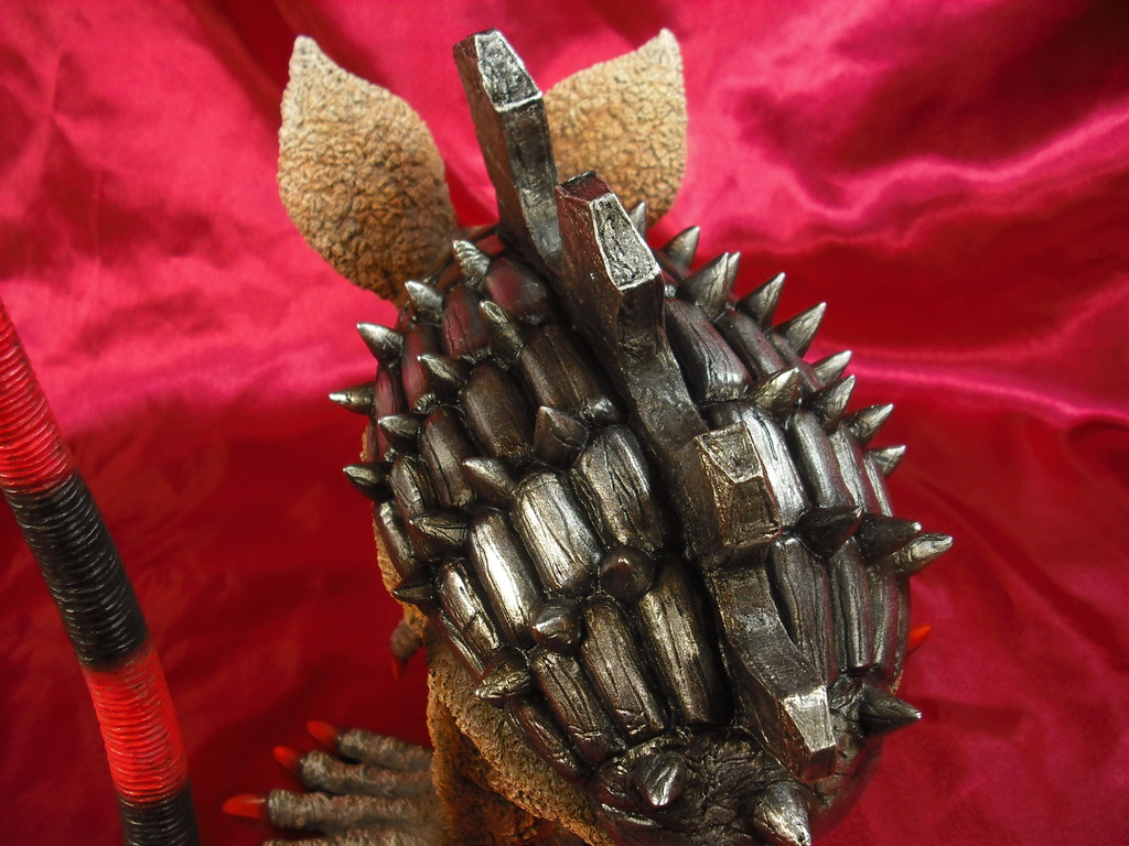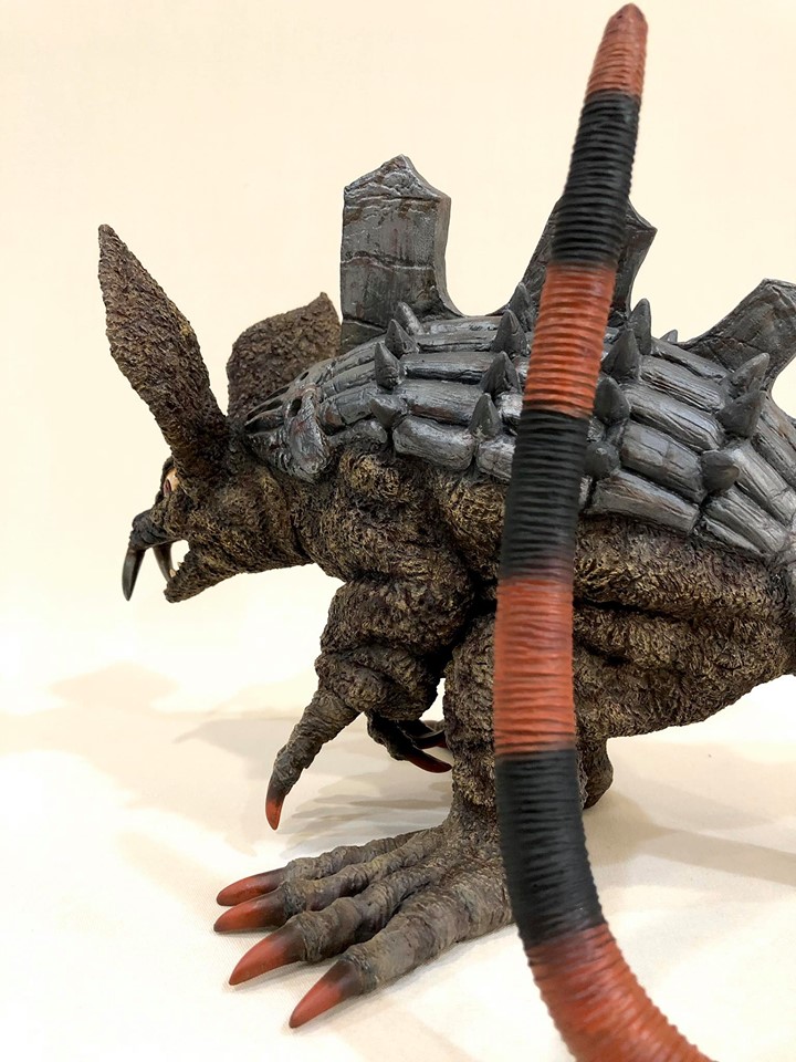 「劇中のイメージではなく依頼主様の要望でアレンジを施した塗装にしております。全体のイメージは、可愛らしい雰囲気なのにそれにそぐわない鋼鉄の甲羅・有毒生物を連想させる派手な尻尾など凶悪な一面も持ち合せている野生動物という感じです」
