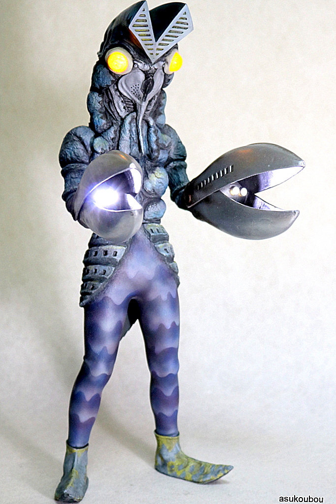 | 販売は終了しました。 2013年8月〜 全高約38〜39cm レジンキット 出現ポーズ版、反射ポーズ版、攻撃ポーズ版 各¥23100(税込)送料¥800 各35パーツ 反射+攻撃ポーズ版 パーツ追加分(首、腕×4、胸板×2) (腕パーツ差し替えを楽しむ場合、電飾キットはお勧めできません) ¥27300(税込)送料¥800 全42パーツ 原型浅川 洋 (C)1966円谷プロ 眼球は透明レジン製の二重構造。 頭の発光部,ハサミの中の電球パーツも透明レジン製。 頭、顔、胴体は中空構造。 手のハサミ部は、開閉可能。 |