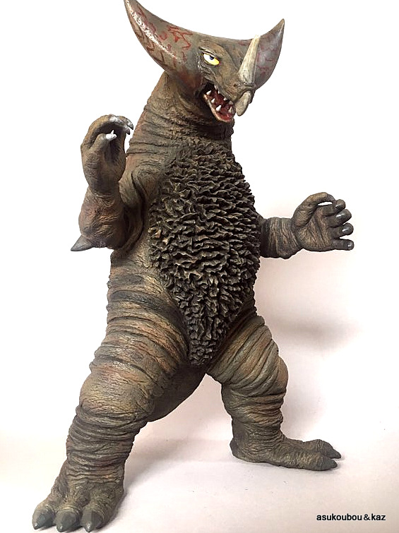 販売は、終了しました。 2010年11月〜 全高約36pレジンキット ¥28000(税込)送料¥800 全12パーツ 原型 浅川 洋 (C)1966円谷プロ 眼球は、透明パーツで、 顔は中空構造、 胴体は、中空成型。 尻尾は、劇中と同じ位置で分割。 原型画像と完成品画像は、 ここをクリック! 電飾キット(別売り) |