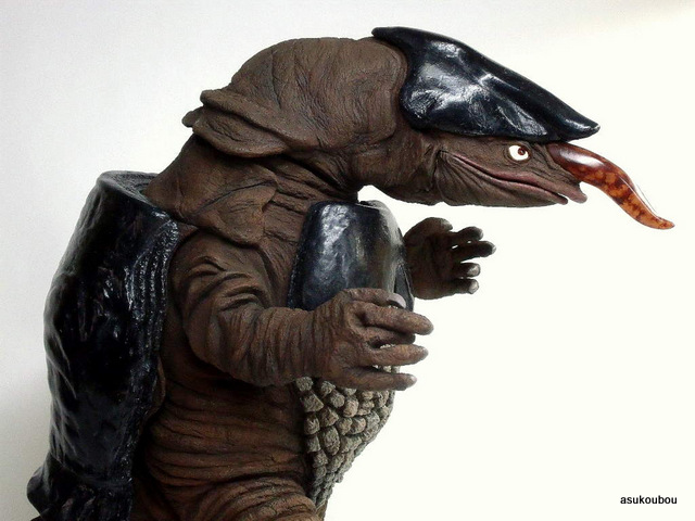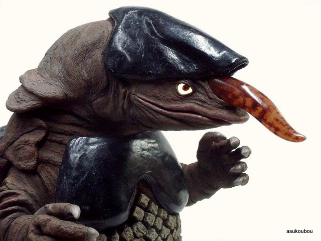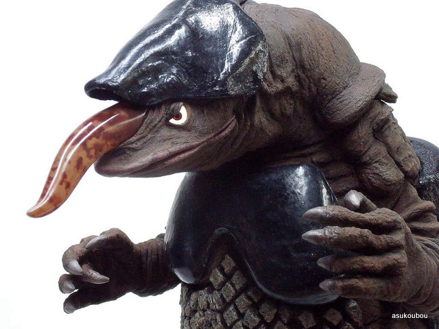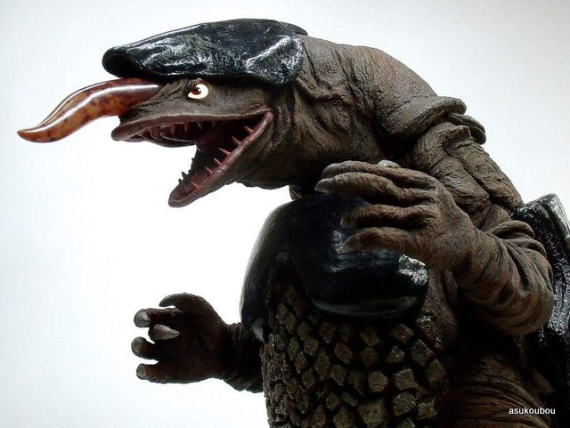 車で言えば新車状態といいますか、お腹は赤く、歯は白く、口開きで電飾は着いてなくて甲羅付き。