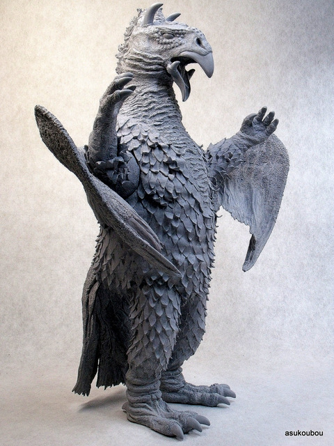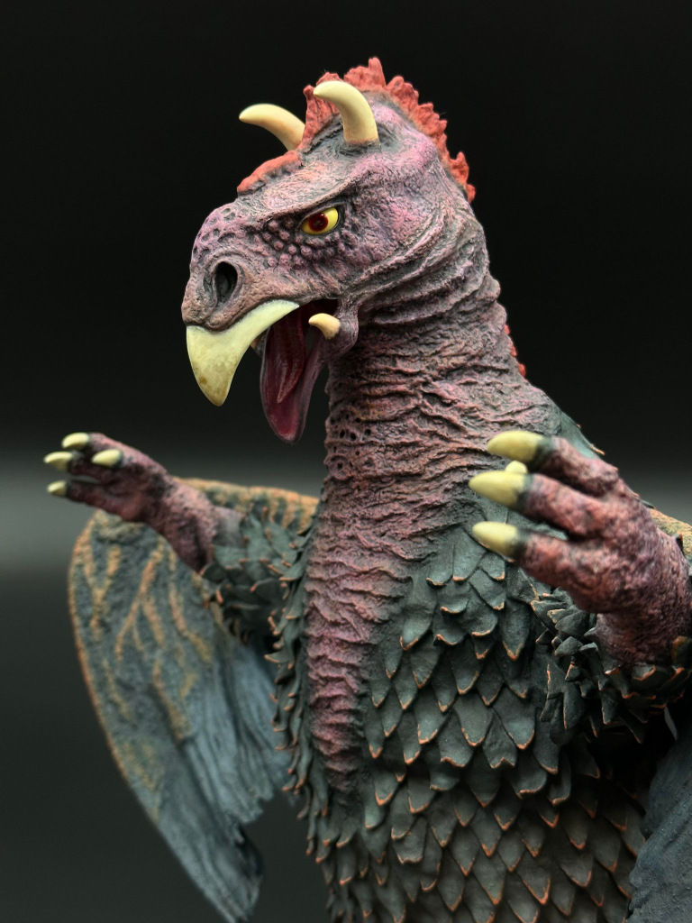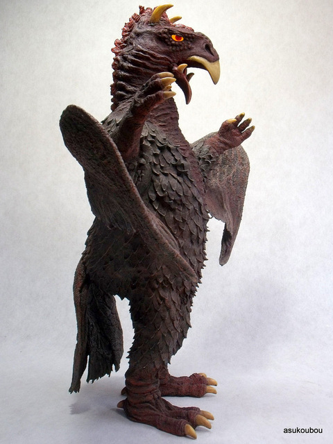 こちらは口閉じバージョン、ウロコの処理だけじゃなく羽やトサカ、爪などなど、各部にこだわりが表現されていますね。 あとは何と言っても胴体や顔、手足など良い色出していますね。