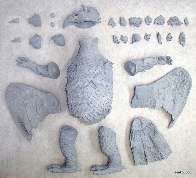 全30パーツ(うちウロコ14パーツ)眼球は透明レジン製。 頭は中空構造、胴体は中空成型。